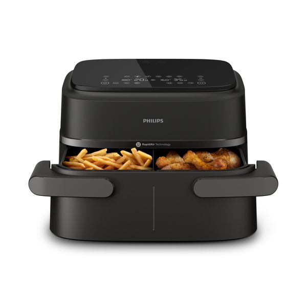 Ο κάδος χωρητικότητας 7,1 Lt διαθέτει αφαιρούμενο χώρισμα για μαγείρεμα δύο διαφορετικών φαγητών ή ενιαία χρήση. Με δύο ανεξάρτητες ζώνες και αυτόματο συγχρονισμό χρόνου, τα γεύματά σου είναι έτοιμα ταυτόχρονα.