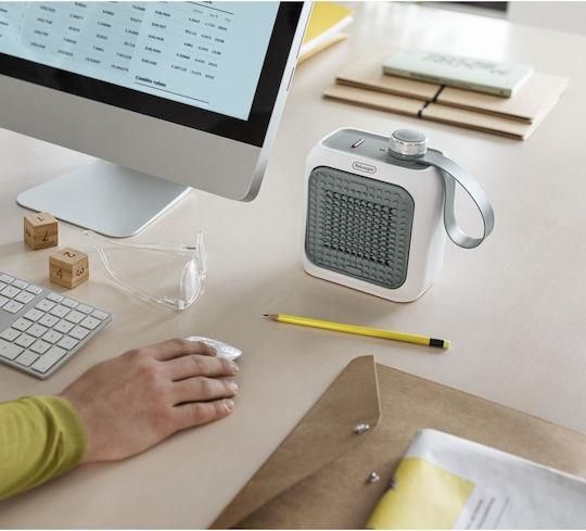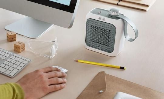 Αερόθερμο κεραμικό Delonghi ισχύος 360 watt με θερμοστάτη ασφαλείας και αυτόματο σβήσιμο σε περίπτωση ανατροπής.