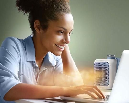Αερόθερμο κεραμικό Delonghi ισχύος 360 watt με θερμοστάτη ασφαλείας και αυτόματο σβήσιμο σε περίπτωση ανατροπής.