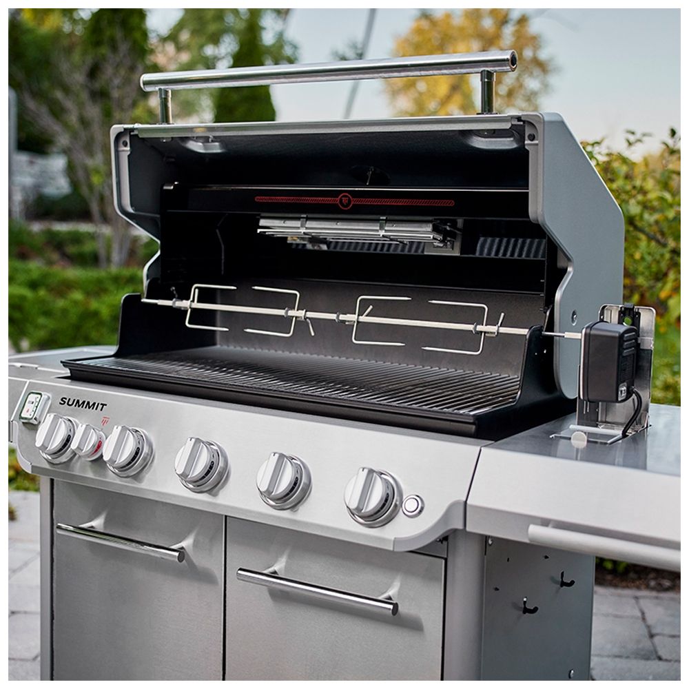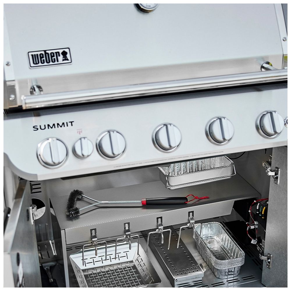 Ανακαλύψτε τη νέα κορυφαία ψησταριά υγραερίου Summit® της Weber. Γεμάτη χαρακτηριστικά που βελτιώνουν τις επιλογές μαγειρέματος σε εξωτερικούς χώρους και σας επιτρέπουν να διασκεδάσετε στο υψηλότερο επίπεδο. Ψήστε μπριζόλες ποιότητας εστιατορίου με το νέο υπέρυθρο καυστήρα, που κατευθύνει τη θερμότητα στην επιφάνεια του φαγητού, δημιουργώντας μια καραμελωμένη κρούστα από άκρη σε άκρη που απογειώνει τη γεύση. Ενεργοποιήστε το καπνιστήρι από ανοξείδωτο ατσάλι για να προσθέσετε καπνιστή γεύση στα πιάτα σας σε χαμηλή φωτιά. Αυτή η ψησταριά διαθέτει σχάρες WEBER CRAFTED και κιτ πλαισίου που σας επιτρέπει να μετατρέψετε την ψησταριά σε σχάρα, φούρνο πίτσας, γουόκ και πολλά άλλα με μια ποικιλία εξαρτημάτων (πωλούνται χωριστά). Μεταφέρετε την κουζίνα σας έξω και δημιουργήστε νόστιμα πιάτα που θα κάνουν κάθε συγκέντρωση αξέχαστη.