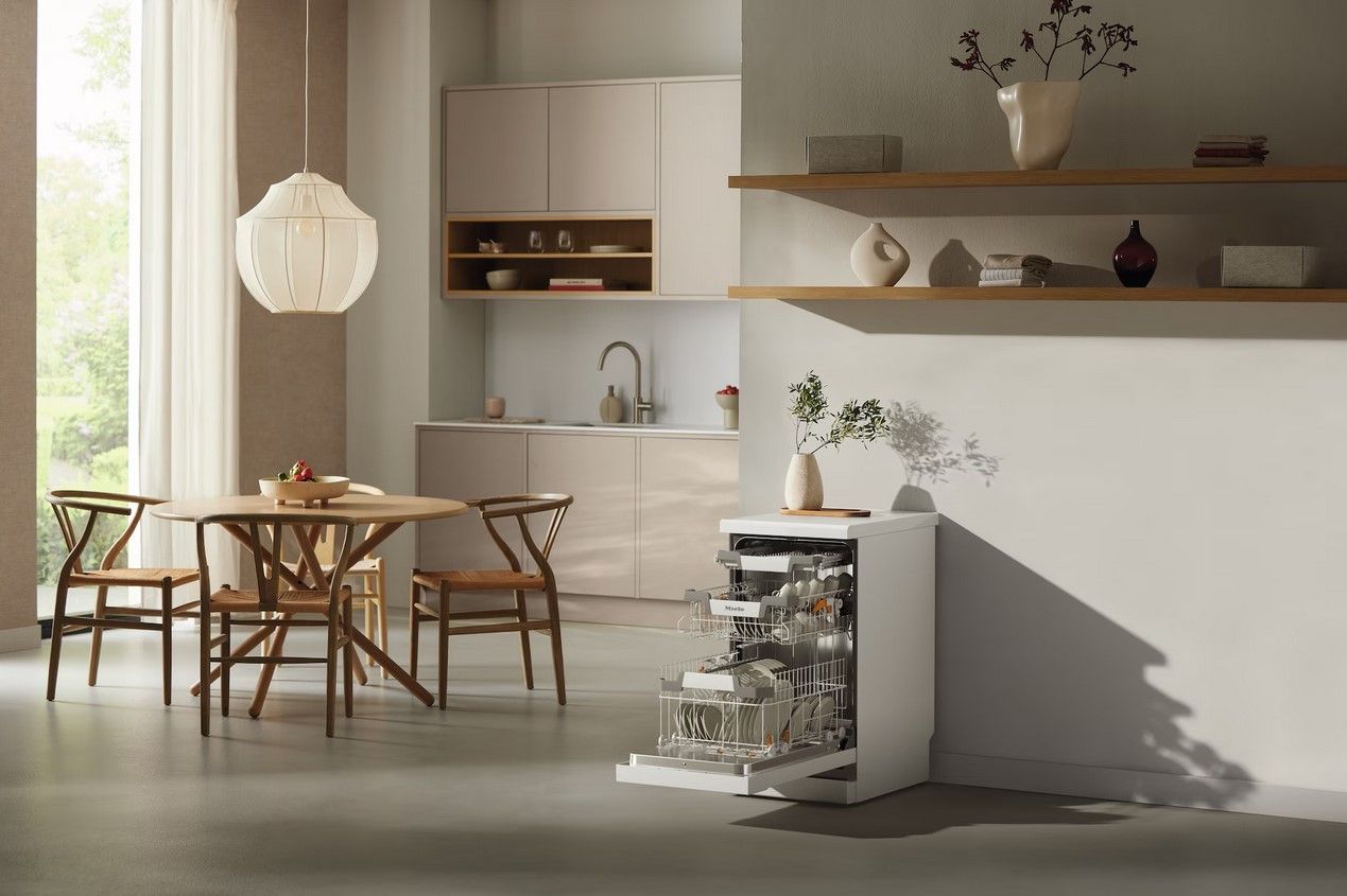 Τα πλυντήρια πιάτων της Miele χρησιμοποιούν αποκλειστικά φρέσκο νερό και στο αυτόματο πρόγραμμα πλένουν με μόλις 6 λίτρα νερού, ποσότητα πολύ μικρότερη από τη χωρητικότητα ενός νεροχύτη. Με αυτό το χαρακτηριστικό, η Miele έχει μειώσει την κατανάλωση νερού κατά 85% τα τελευταία 30 χρόνια. Η κατανάλωση ρεύματος μειώνεται επίσης σε νέα χαμηλά ρεκόρ: στο πρόγραμμα ECO, τα πλυντήρια Miele επιτυγχάνουν τιμές κατανάλωσης ενέργειας μόλις 0,67 kWh.