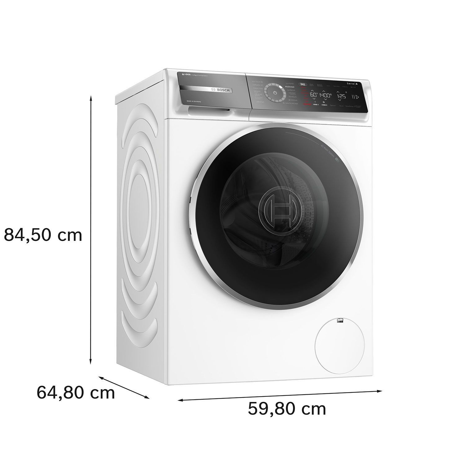 Πλυντήριο ρούχων Serie 8 με νέα επιλογή Ατμός, λειτουργία που συνδυάζεται με αρκετά προγράμματα πλύσης και ψεκάζει τα ρούχα με ατμό στο τέλος της πλύσης, σύστημα i-DOS, τεχνολογία ActiveWater Plus, επιλογή Μικρό φορτίο, εφαρμογή Home Connect, συστήματα AntiStain και 4D Wash!