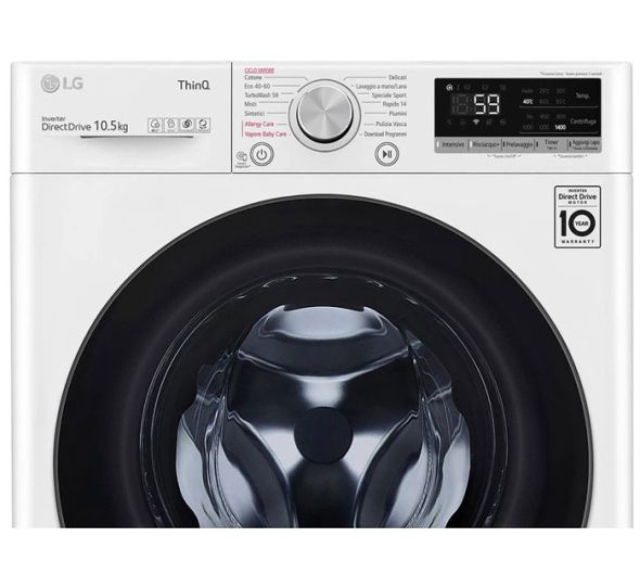 Πλυντήριο χωρητικότητας 10,5 κιλών, με τεχνολογία Ατμού, τεχνητή νοημοσύνη AI DD, 6 Motion, SmartThinQ, δυνατότητα Παύσης πλύσης & προσθήκης ρούχων, Turbo Wash 59’ και μοτέρ Direct Drive με 10 χρόνια εγγύηση από την LG!