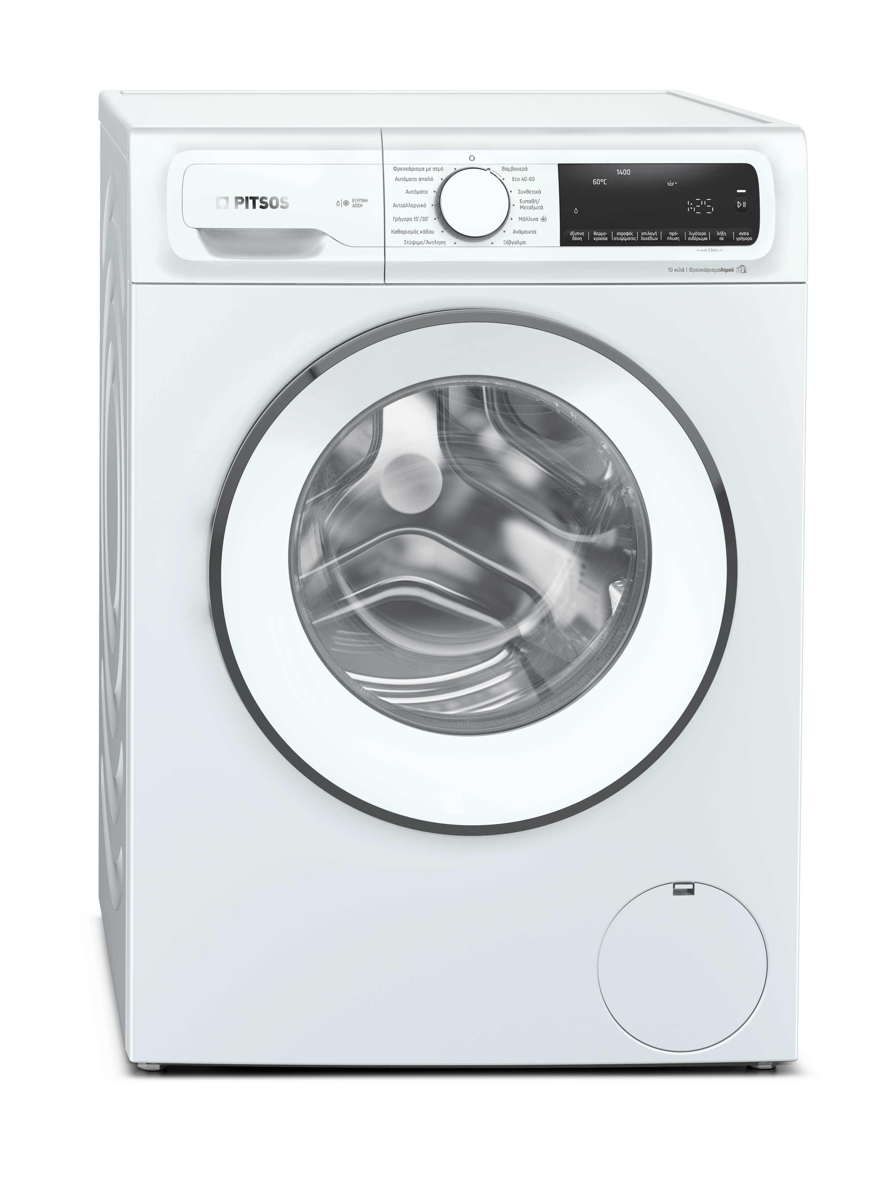 H τεχνολογία Pitsos είναι εδώ, ειδικά σχεδιασμένη για να απαλλαγείς μια για πάντα από τα δύσκολα και να απολαμβάνεις πραγματικά καθαρά ρούχα, κάθε φορά. Απλά επίλεξε τον τύπο του λεκέ στην οθόνη της συσκευής και η πλύση θα προσαρμοστεί ανάλογα, ρυθμίζοντας αυτόματα τη θερμοκρασία, την κίνηση του κάδου και το χρόνο μουλιάσματος.