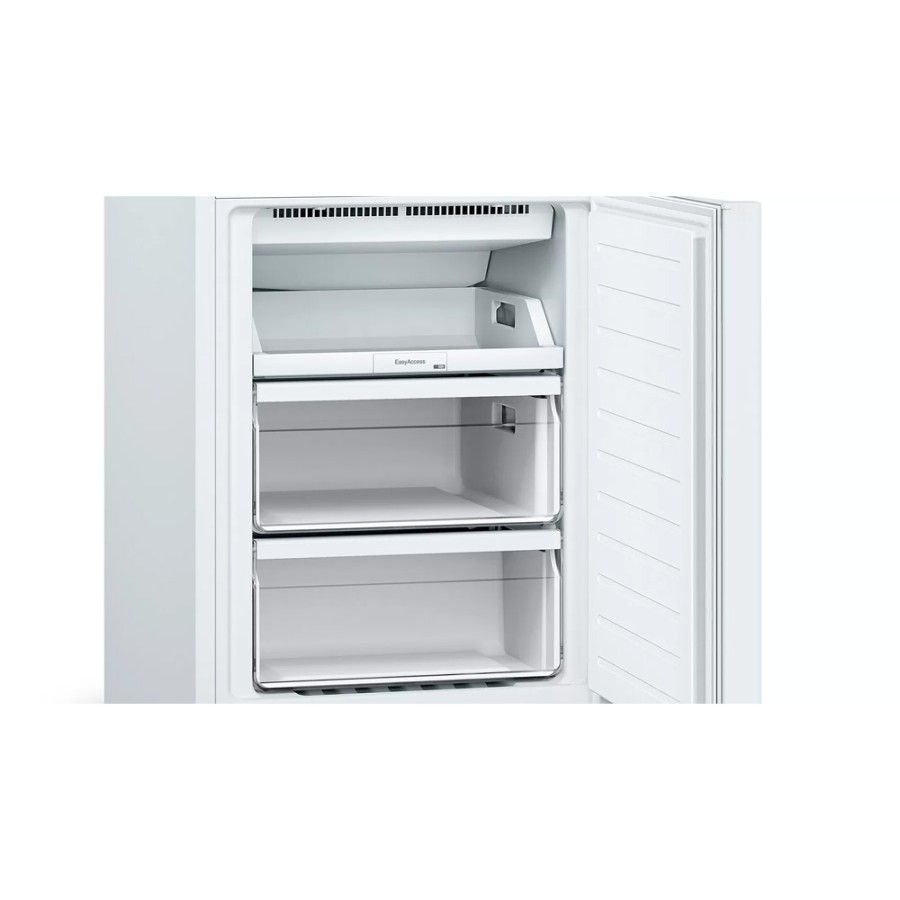 Ψυγειοκαταψύκτης NoFrost με πρωτοποριακή τεχνολογία Perfect Fit για τοποθέτηση ακριβώς δίπλα σε τοίχους και έπιπλα, διάφανο συρτάρι με κυματοειδή πυθμένα MultiBox, ιδανικό για την διατήρηση φρέσκων φρούτων και λαχανικών και αισθητήρες FreshSense, που παρακολουθούν και ελέγχουν τη θερμοκρασία περιβάλλοντος, ψυγείου και καταψύκτη!