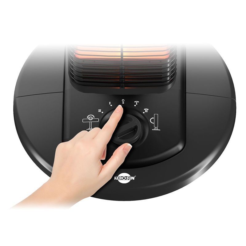 Ηλεκτρική Θερμάστρα Carbon KCH-10YD της Kerosun. Η λειτουργία περιστροφής εξασφαλίζει ομοιόμορφη διάχυση της θερμότητας, ενώ ο αντανακλαστικός καθρέφτης ενισχύει σημαντικά την απόδοση με δύο επίπεδα λειτουργίας 500 & 1000Watt.